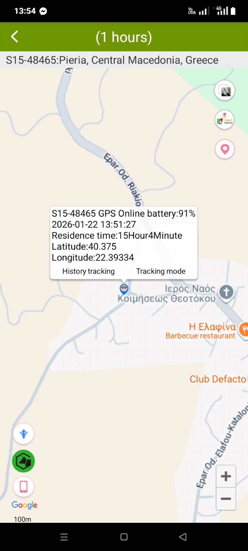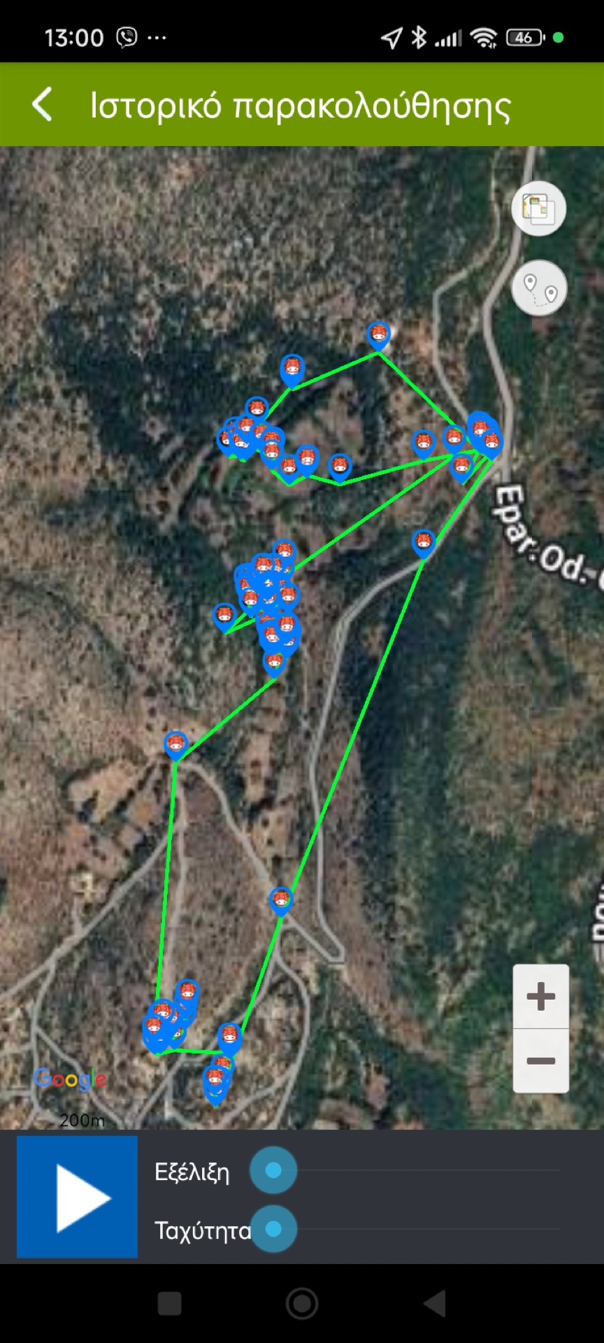 • Θέση του ζώου ανά τακτά διαστήματα, ανάλογα με την επιλογή του χρήστη